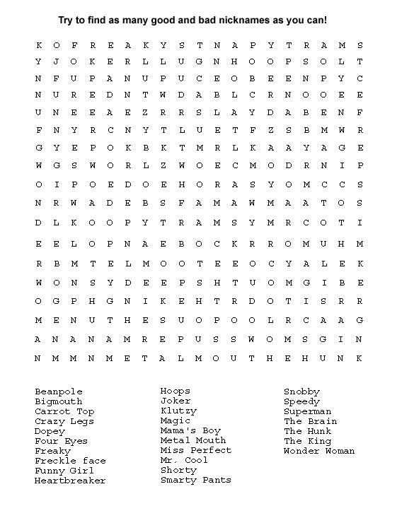 WORD SEARCH PAGE